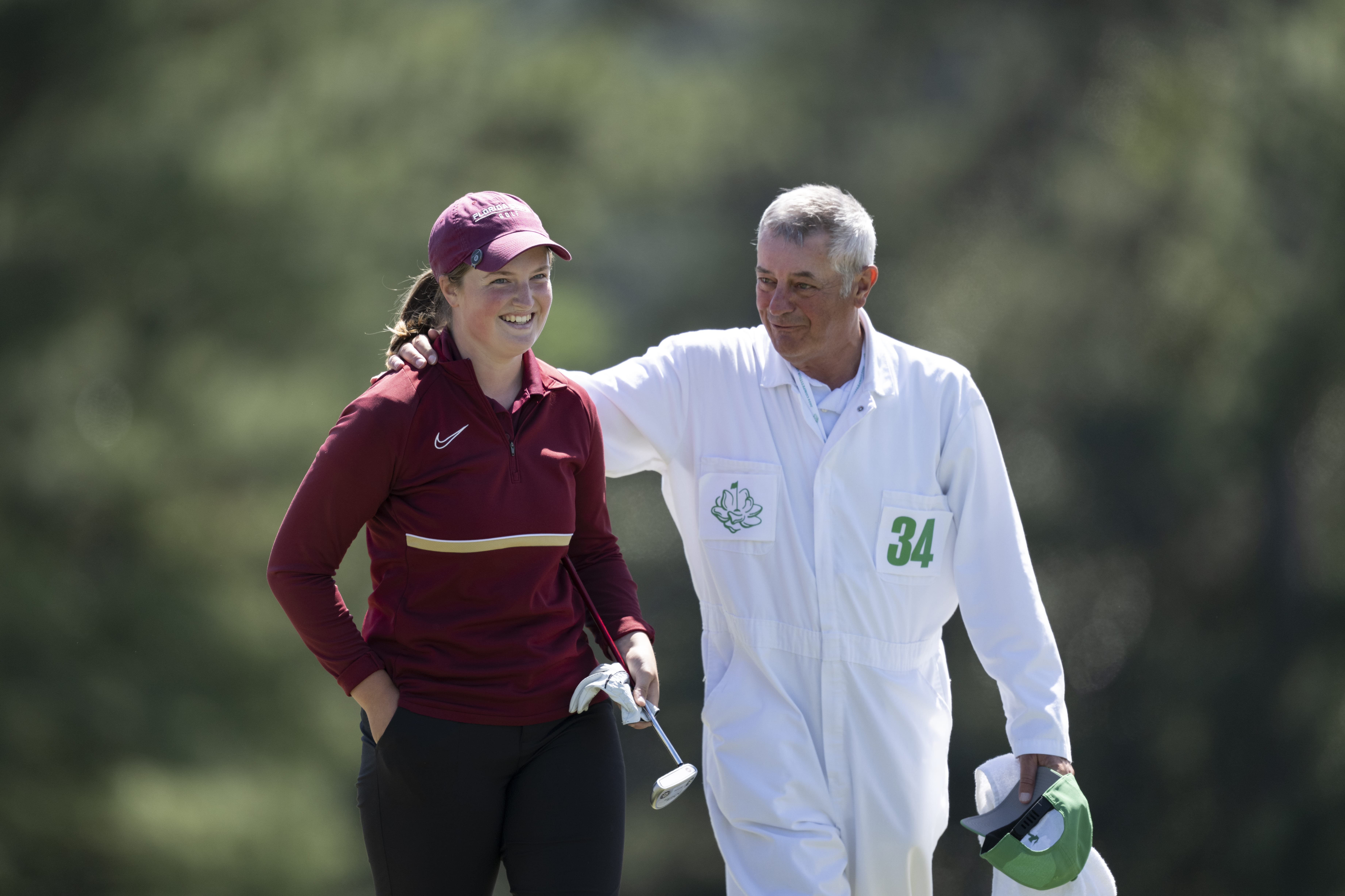 Photo: Lottie Woad with caddie. Courtesy of Augusta National Golf Club.